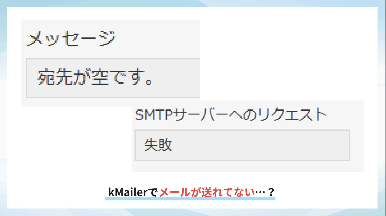 1つ目は「メール全然送れていない事件」です。kMailer でメールを一斉送信したはずなのに、全く反応がない。メールの送信履歴を確認すると、宛先が空だったり、リクエストが失敗したという履歴が残っていました。