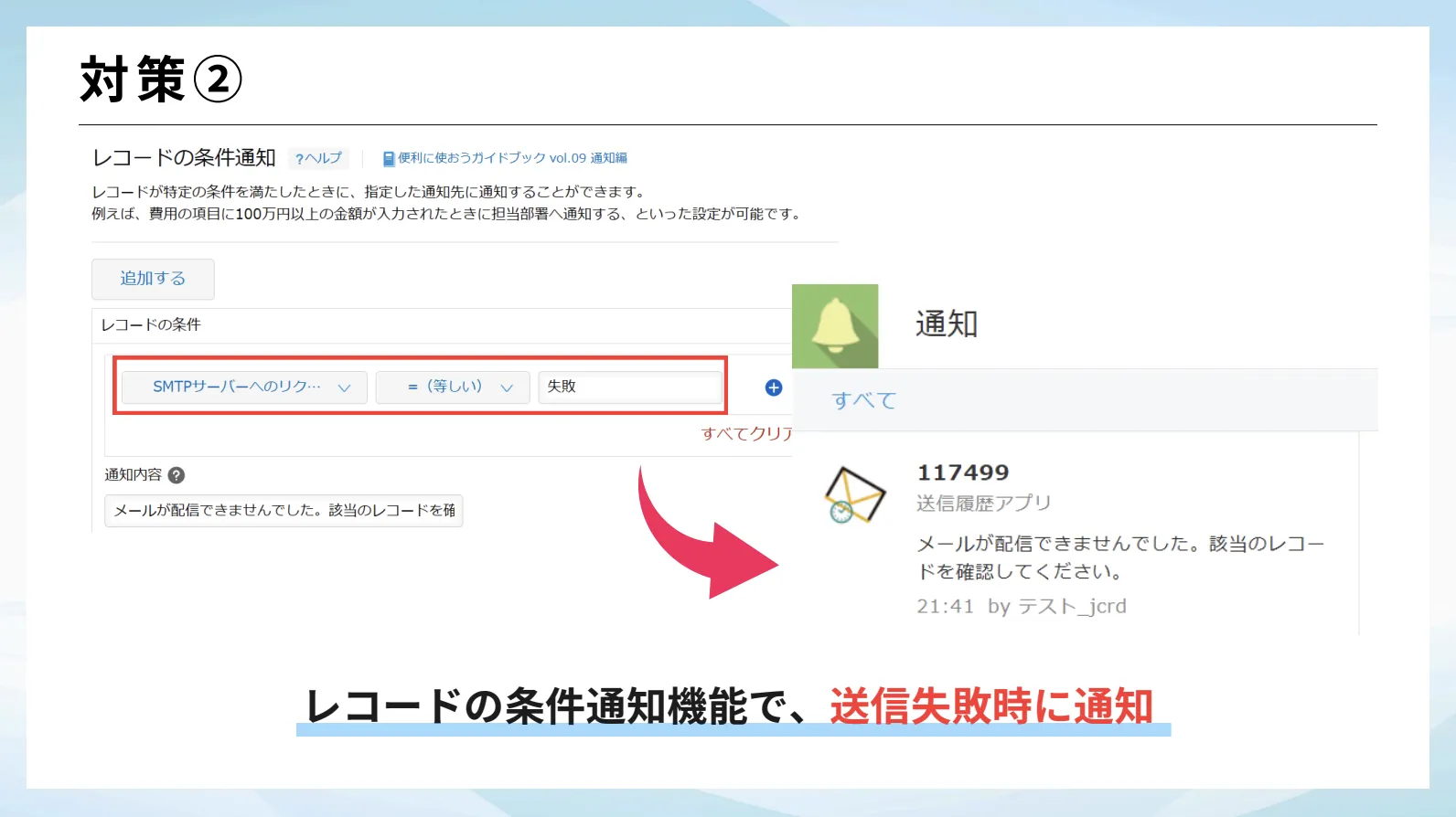 2つ目の対策としては、送信が失敗した時に管理者に通知されるようにして、追跡できるようにしました。