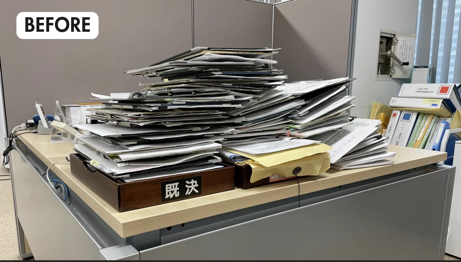 これは当時の、とある部長のデスクです。1日不在にしただけで、これだけの書類が積み上がってしまうのが日常でした。