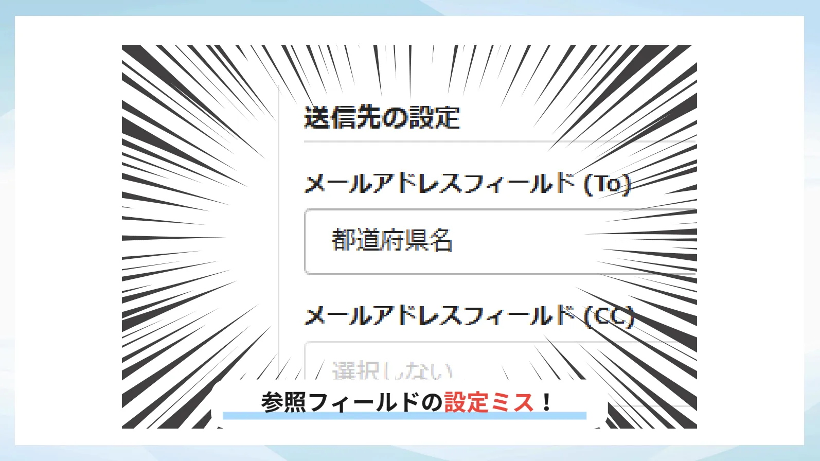 下図はkMailerの管理画面の一部です。原因は、宛先として「メールアドレス」のフィールドを参照すべきところ、「都道府県名」を参照していたことでした。