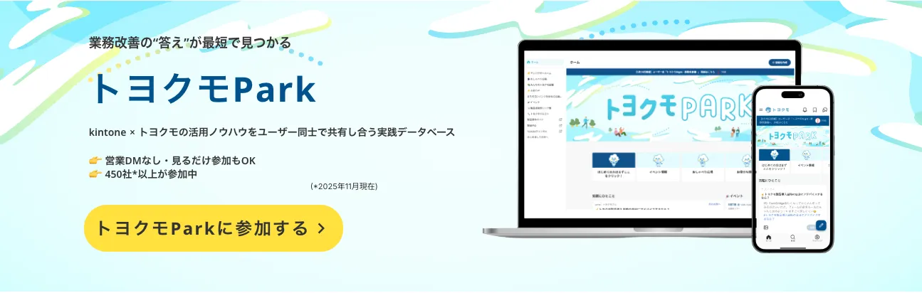 最新情報・お申し込み情報はトヨクモParkToyokumo kintone Blogで随時お知らせします。