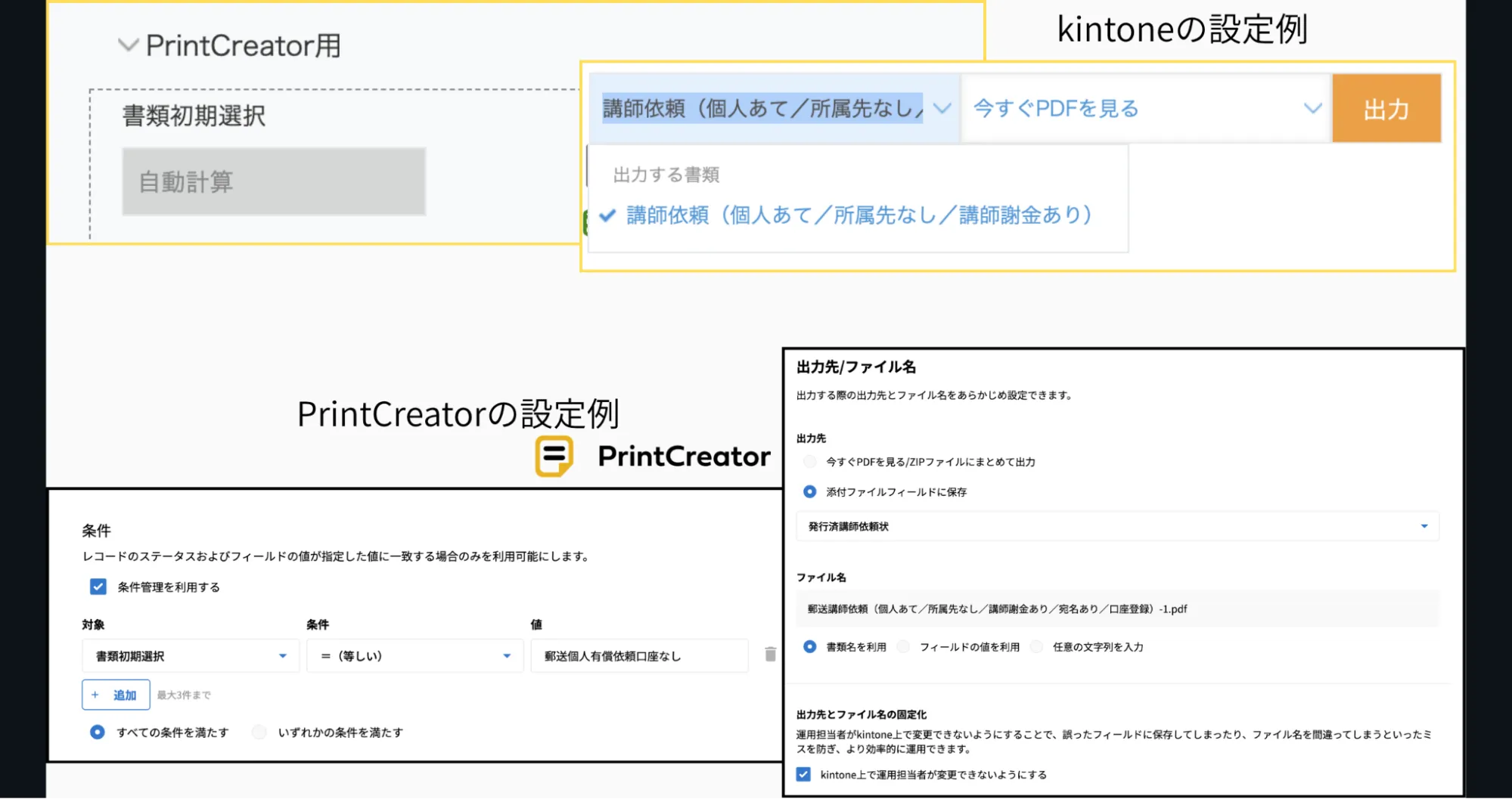 作成に際して、PrintCreatorでは条件を設定して、条件に基づく書類以外は出ないようにしているため、事務局の職員はボタンを数回押すだけで大丈夫です。