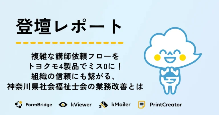 複雑な講師依頼フローをトヨクモ4製品でミス0に!組織の信頼にも繋がる、神奈川県社会福祉士会の業務改善とは