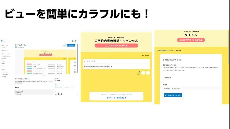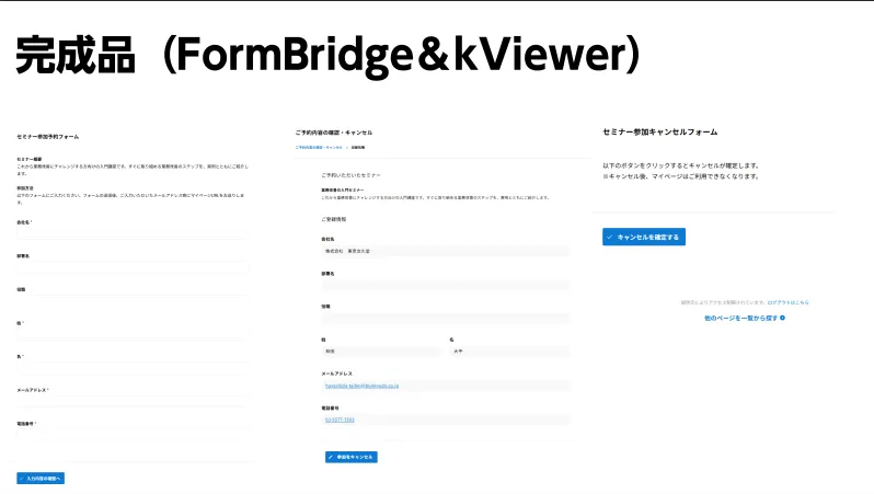 参加者は氏名や連絡先などの基本情報を入力して予約をし、予約確認画面からは、キャンセルもできるシンプルながらも使えそうなシステムとなっています。