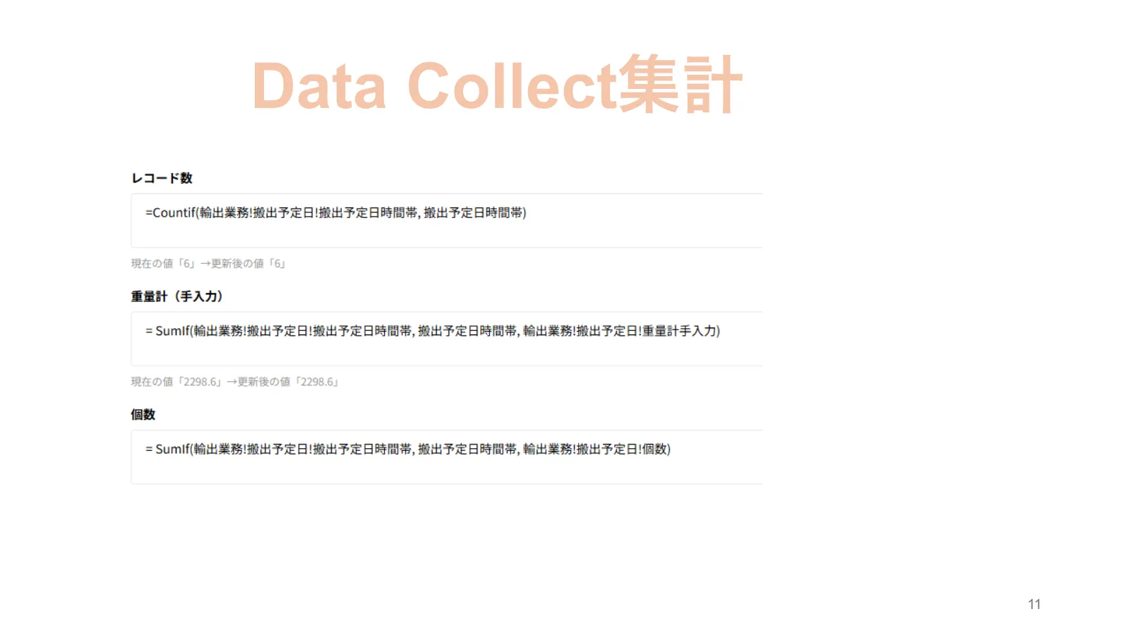 次に、DataCollectで設定している計算式(関数)は以下の通りです。