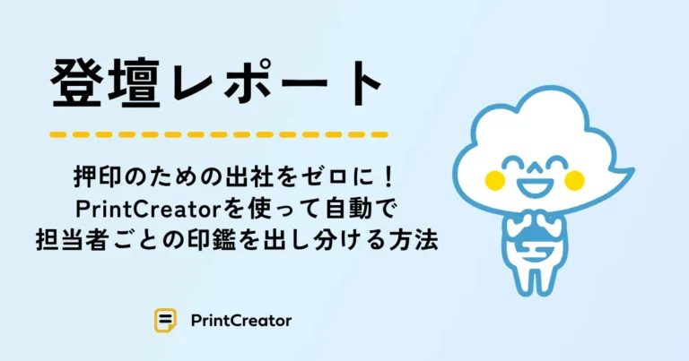 この記事は2025年9月に開催したユーザー会での弁護士法人シーライト 上原さんのLT(ライトニングトーク)登壇の様子をお届けするレポート記事です。 今回は「PrintCteatorで担当者の印鑑を出力する設定をした話」で … 続きを読む 【弁護士法人シーライト様】押印のための出社をゼロに!PrintCreatorを使って自動で担当者ごとの印鑑を出し分ける方法