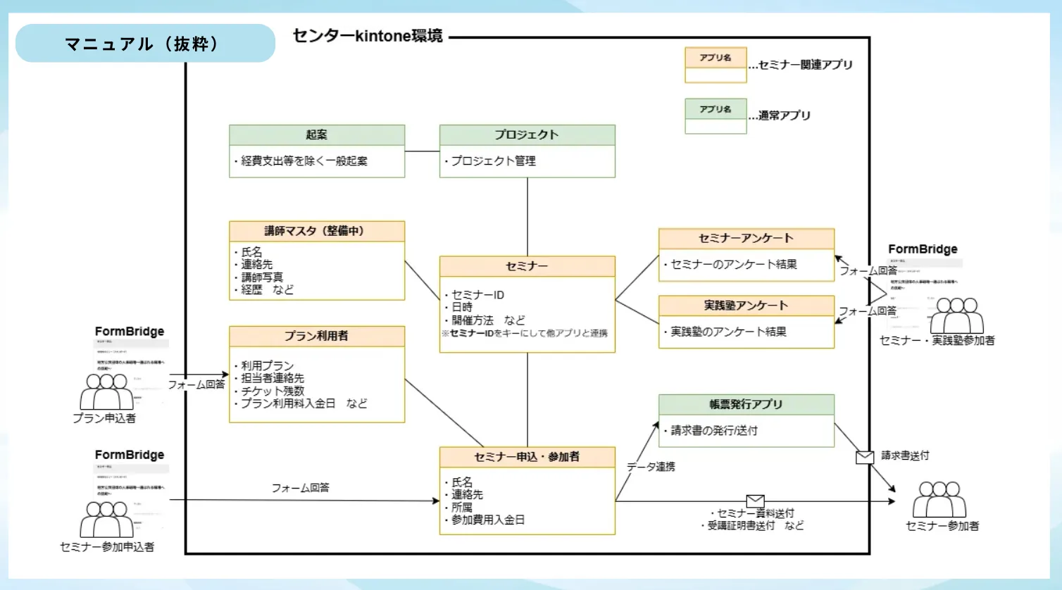実際に、アプリの全体像や、どういう仕組みでセミナーのアプリが動いているのかが明確になるものを作成しました。