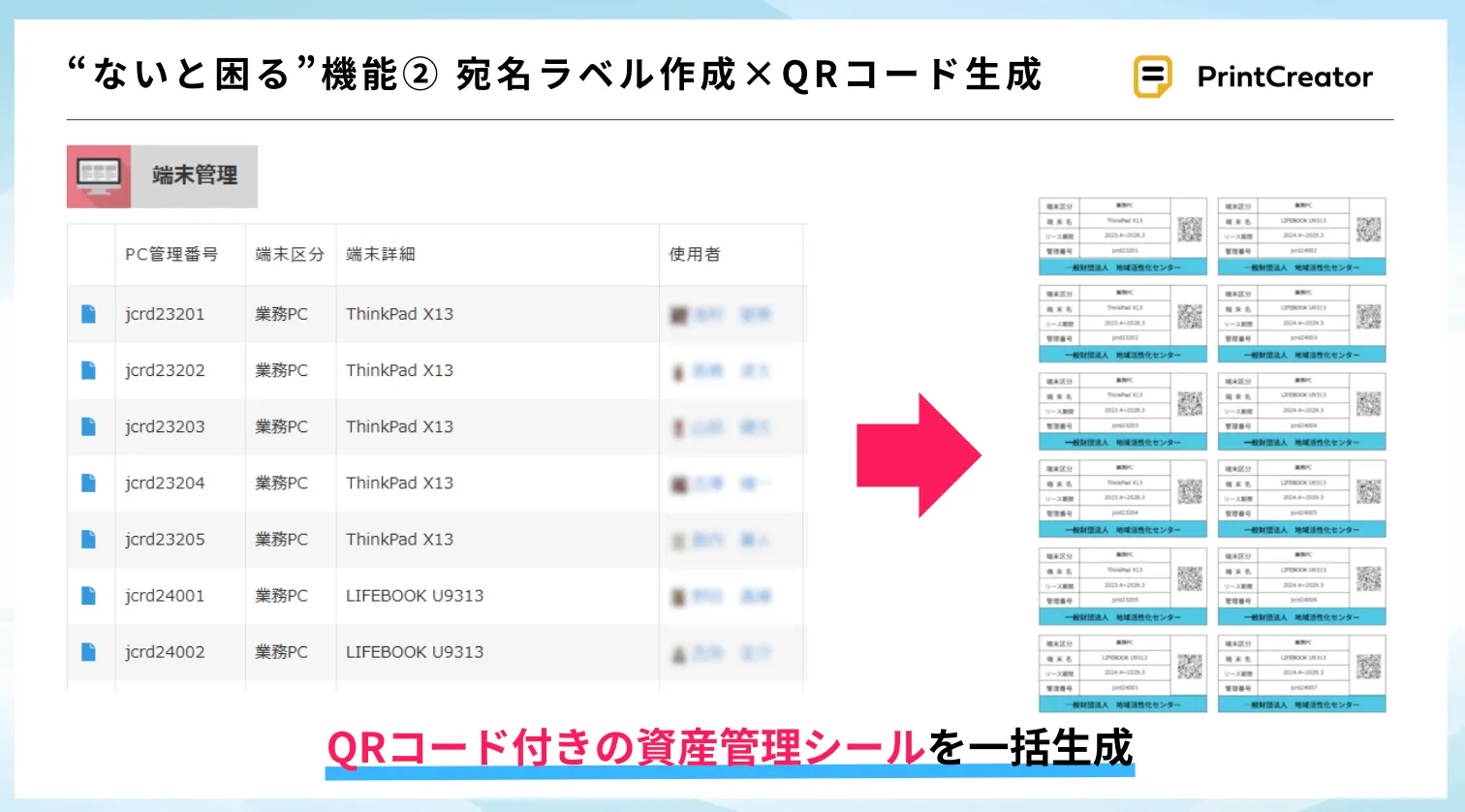 ないと困る機能の2つ目は、PrintCreatorの「宛名ラベル作成」と「QRコード作成」です。