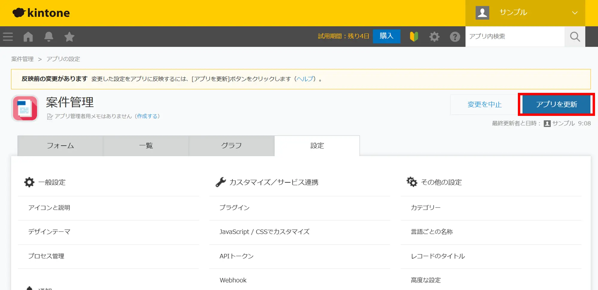 kintoneでのレコード登録や編集、削除を通知できるだけでも便利ですが、「プロセス管理」を組み合わせると、さらに便利な運用が目指せます。