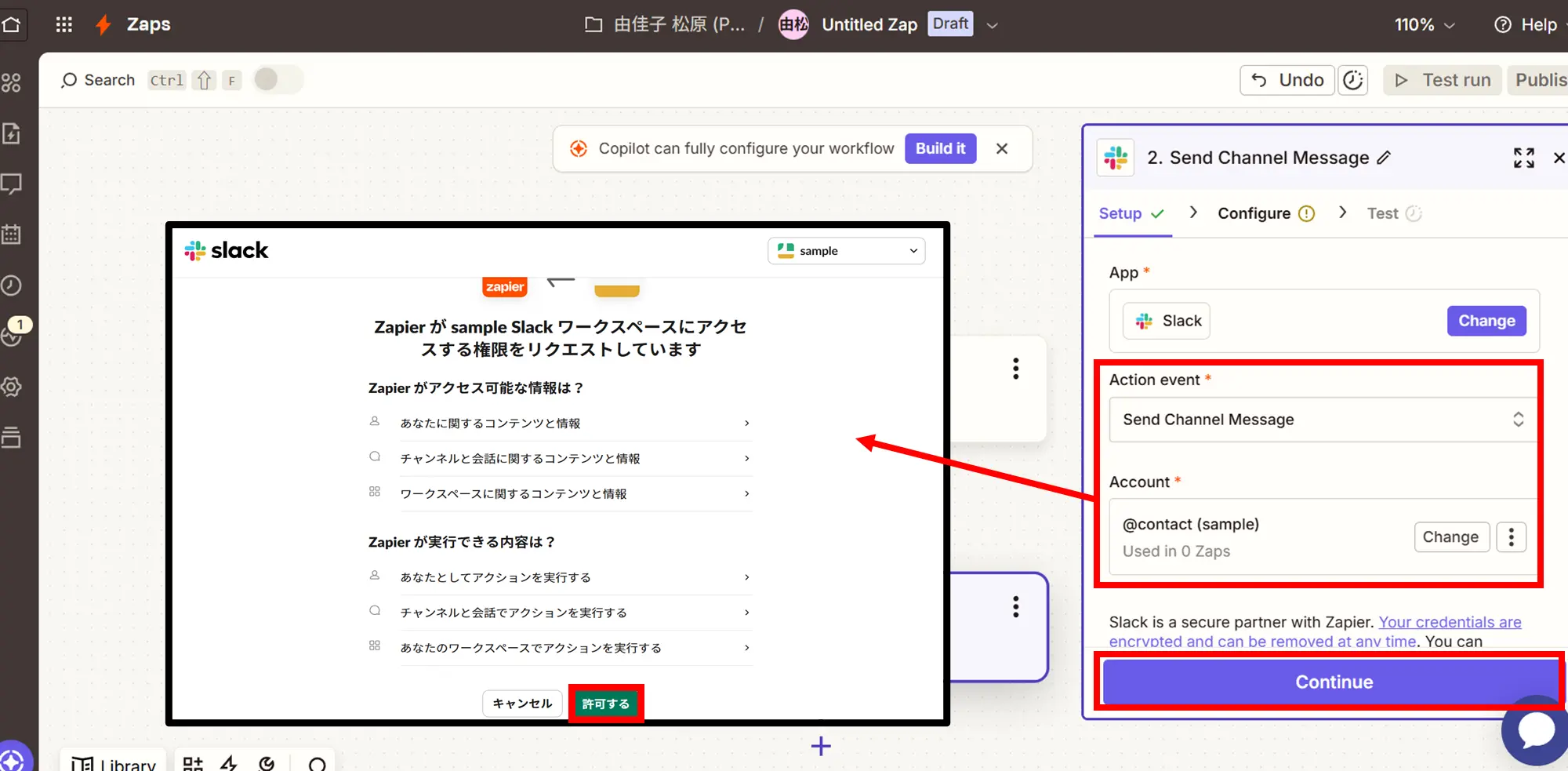 ZapierのWebページは後ほど操作するため、そのまま開いておいてください。