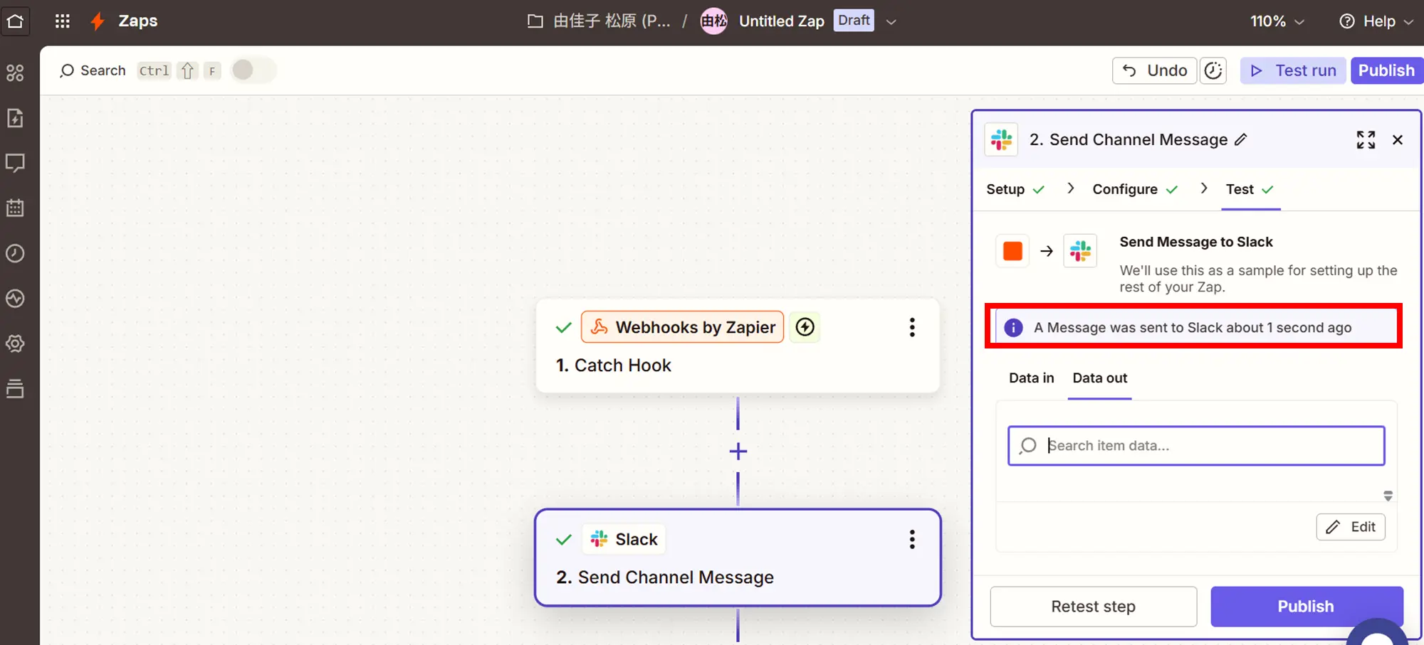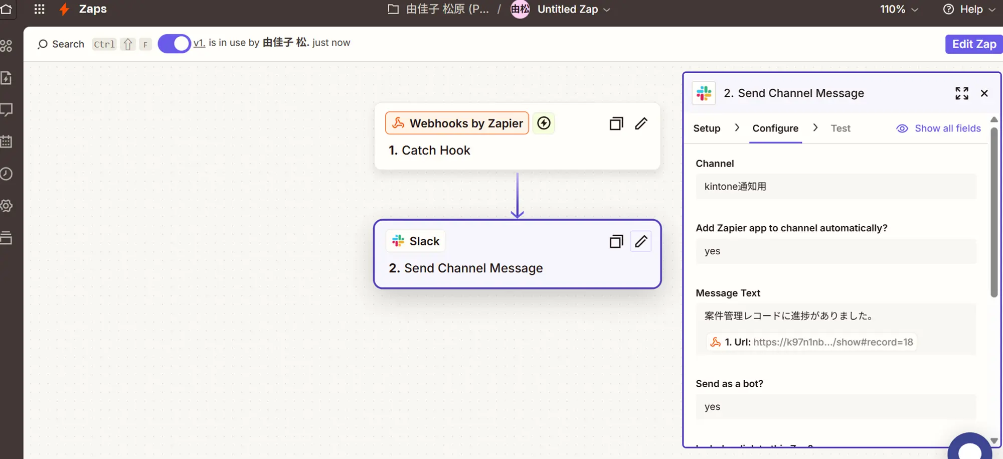 そのため間にZapierなどのWebhook連携支援ツールを用いて、通知を送れるようにします。