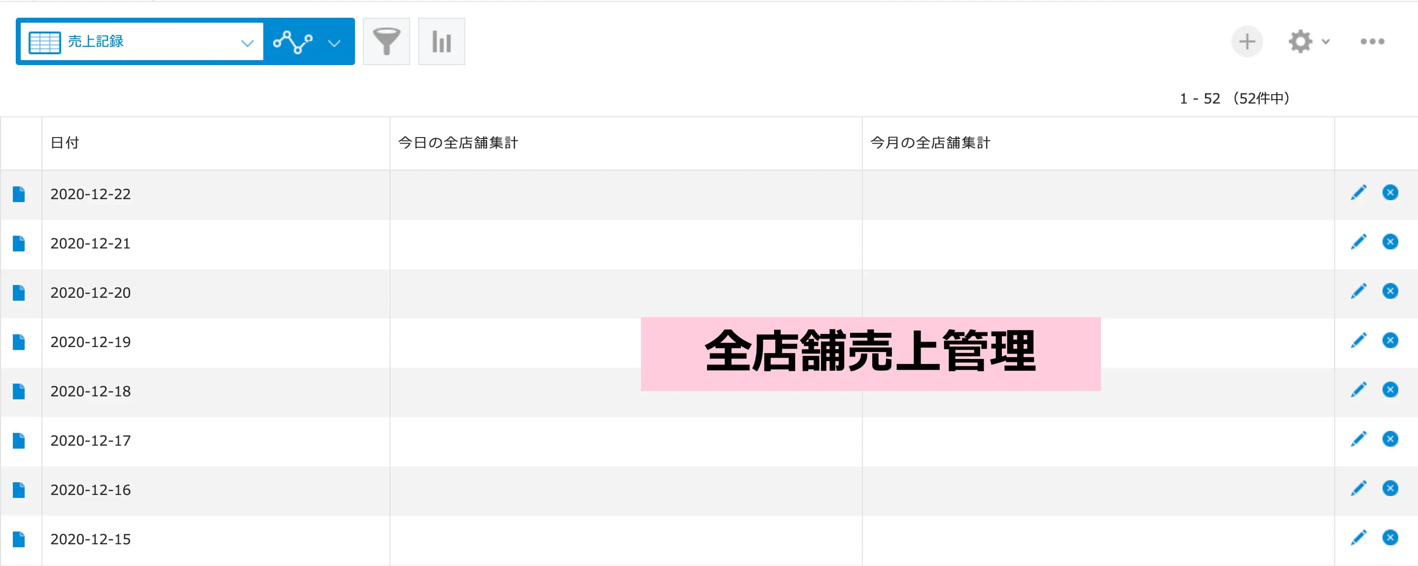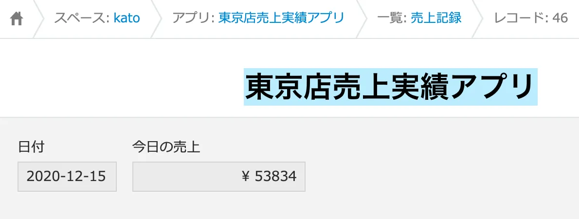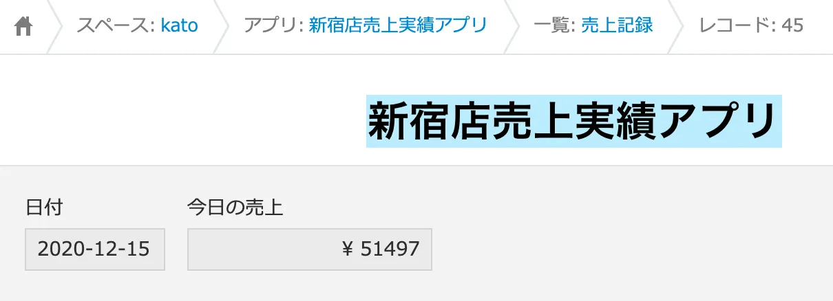 kintoneの全店舗売上集計アプリ(①)に戻ります。